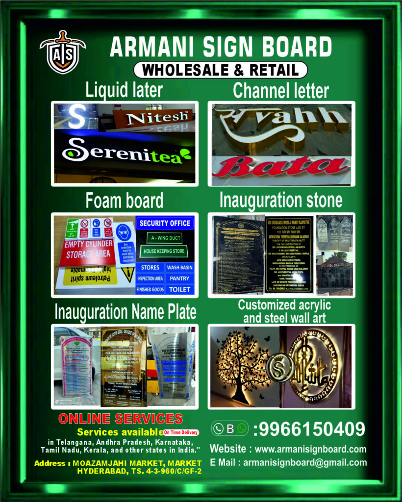 Looking to elevate your space with eye-catching signage or stylish wall art? Whether you’re launching a new project or upgrading your office decor, the right signboard makes all the difference. At Armani Sign, we bring your ideas to life with creative, durable, and professional signage solutions.
